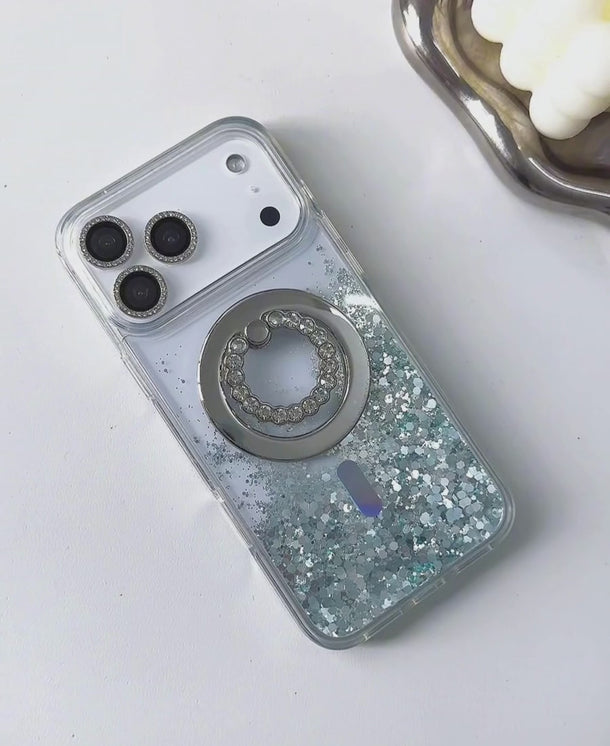 Protective MagSafe case with cascading glitter confetti that moves with you and makes a statement!