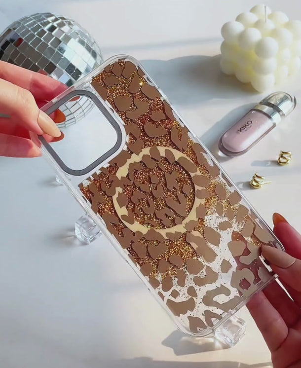 Go wild! Protective MagSafe phone case with cascading metallic glitter that moves with you and makes a statement.