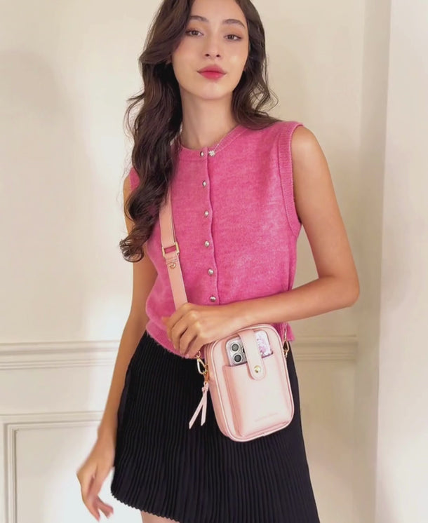 • Adjustable and detachable crossbody strap with a D-ring loop to clip on your favorite accessories or keychains